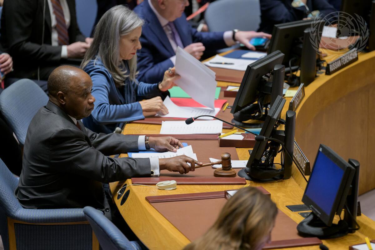 Pedro Comissário Afonso, Permanent Representative of the Republic of Mozambique to the United Nation and President of the Security Council for the month of March, chairs the Security Council meeting on maintenance of peace and security of Ukraine.