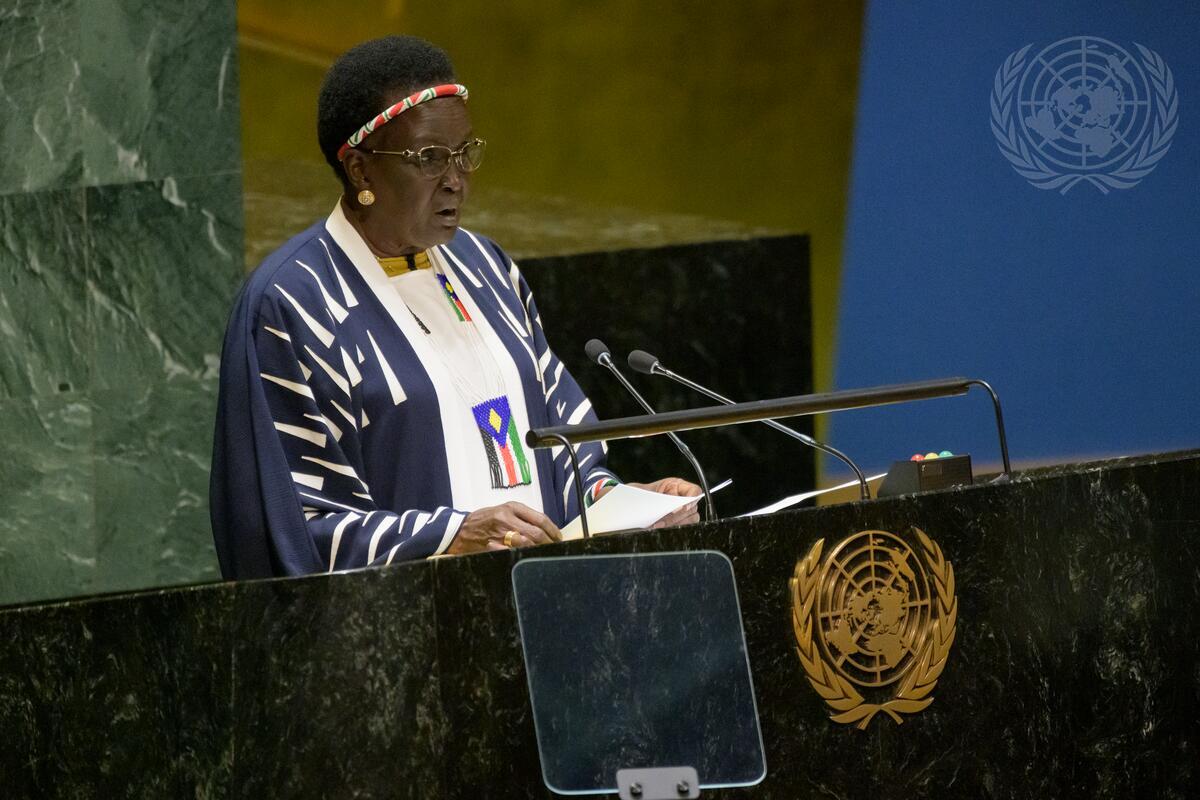 Rebecca Nyandeng De Mabior, Vice President of the Republic of South Sudan, addresses the opening of the sixty-seventh session of the Commission on the Status of Women (6 to 17 March 2023). The priority theme for the 67th session is “Innovation and technological change, and education in the digital age for achieving gender equality and the empowerment of all women and girls”.