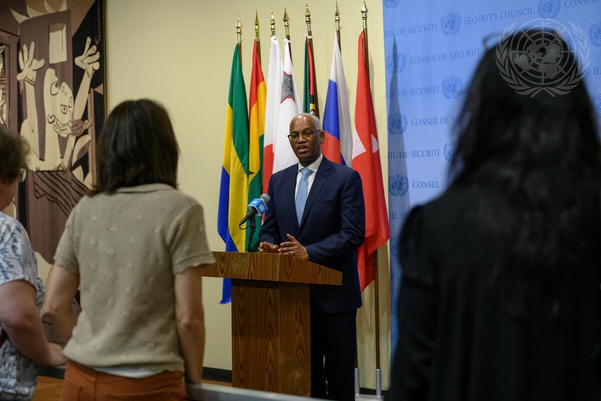 El-Ghassim Wane, Special Representative of the Secretary-General and Head of the United Nations Multidimensional Integrated Stabilization Mission in Mali (MINUSMA), briefs reporters after the Security Council meeting on the situation in Mali.