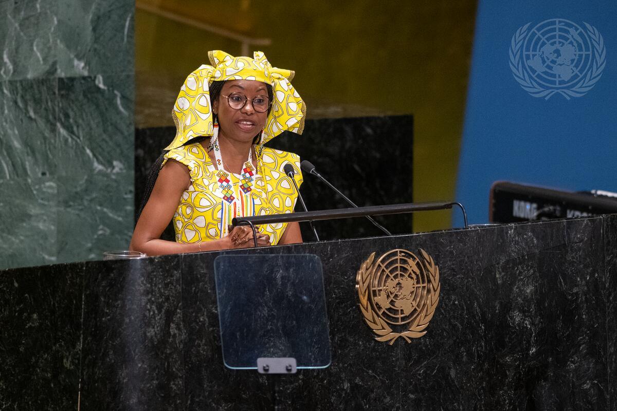 Hindou Oumarou Ibrahim, President of the Association of Indigenous Women and Peoples of Chad, addresses the event “Her Land. Her Rights: Advancing Gender Equality and Land Restoration Goals”. The high-level event marks the 2023 Desertification and Drought Day with a focus on policies and actions needed to advance women’s land rights and promote stronger female leadership and decision-making power in sustainable land management.