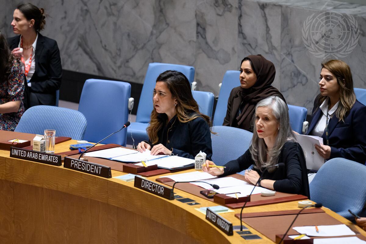 Lana Zaki Nusseibeh (left at the table), Permanent Representative of the United Arab Emirates to the United Nations and President of the Security Council for the month of June, chairs the Security Council meeting on the situation in Mali.