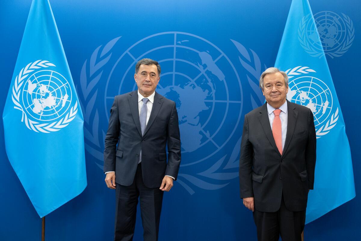 Secretary-General António Guterres (right) meets with Vladimir Norov, Minister for Foreign Affairs of the Republic of Uzbekistan.
