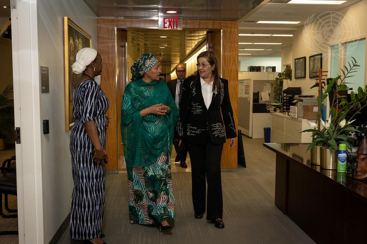 Deputy Secretary-General Amina Mohammed (second left) meets with Hala El-Said (right), Minister of Planning and Economic Development of Egypt.