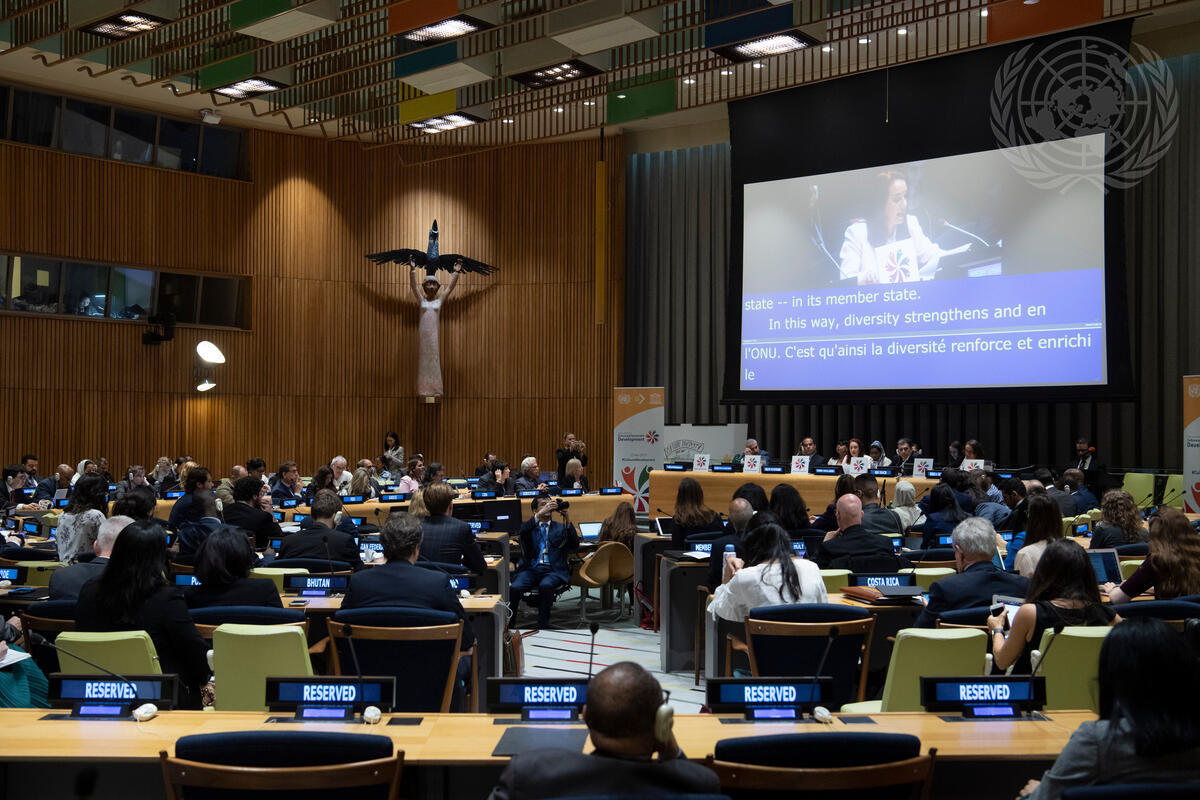 María Fernanda Espinosa Garcés (on screen and centre at dais), President of the seventy-third session of the General Assembly, opens the high-level event on “Culture and Sustainable Development”.