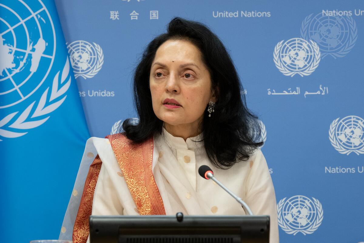 Ruchira Kamboj, Permanent Representative of India to the United Nations, and Chair of the Security Council Counter-Terrorism Committee, briefs reporters. Moderator is David Scharia, Director and Chief of Technical Expertise and Research Branch of the Counter-Terrorism Committee Executive Directorate (CTED).