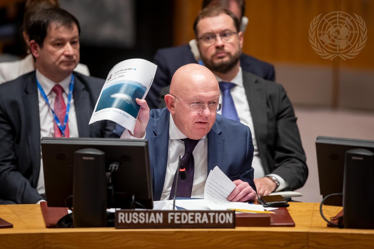 Vassily Nebenzia, Permanent Representative of Russian Federation, addresses the Security Council meeting on threats to international peace and security.