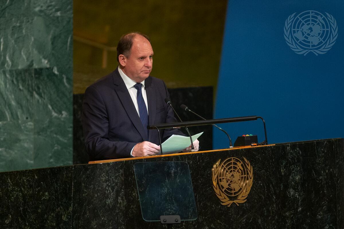of Moldova to the United Nations, addresses the resumed 11th Emergency Special Session of the General Assembly on Ukraine.
