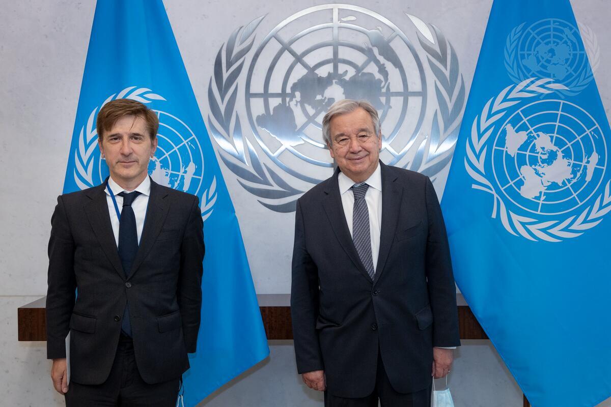 Secretary-General António Guterres (right) meets with Leonardo Bencini, President-designate of the Ninth Review Conference of the Biological Weapons Conventions.