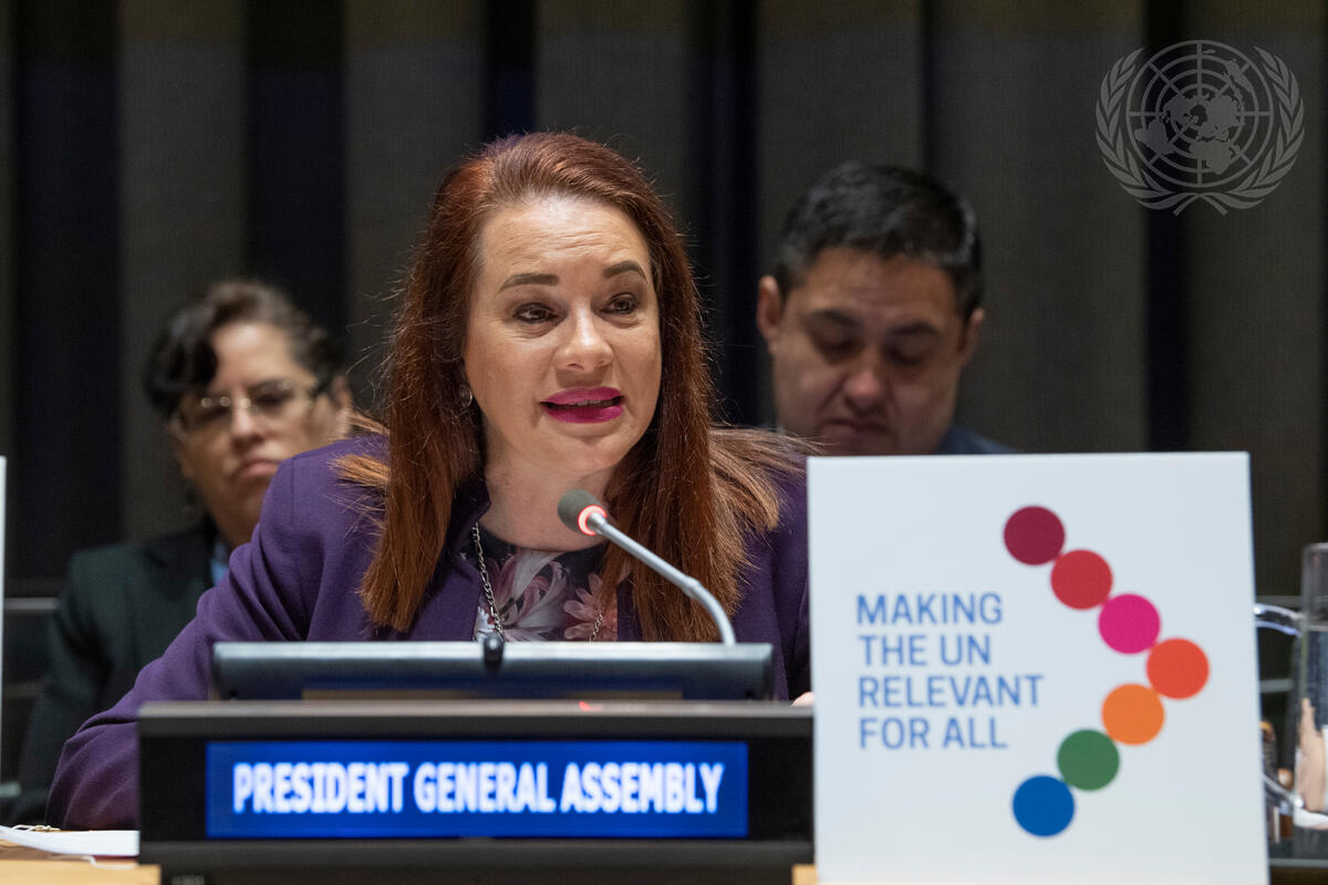María Fernanda Espinosa Garcés, President of the seventy-third session of the General Assembly, makes remarks during the informal interactive dialogue on commodity markets.