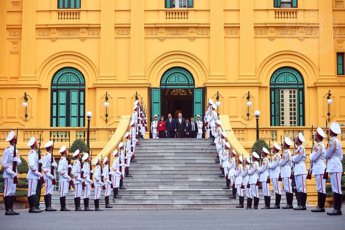 Secretary-General António Guterres (centre right) meets with Nguyen Xuan Phuc (centre left), State President of the Socialist Republic of Viet Nam, meet at the Presidential Palace in Hanoi, Vietnam.