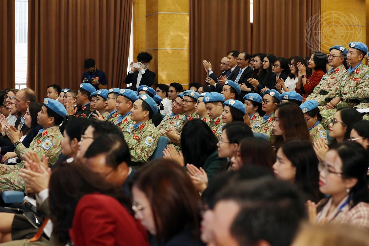 Secretary-General António Guterres (not pictured) and Nguyen Xuan Phuc, State President of Viet Nam meet with Vietnamese Peacekeepers during a ceremony commemorating the 45th anniversary of Viet Nam’s membership in the United Nations.