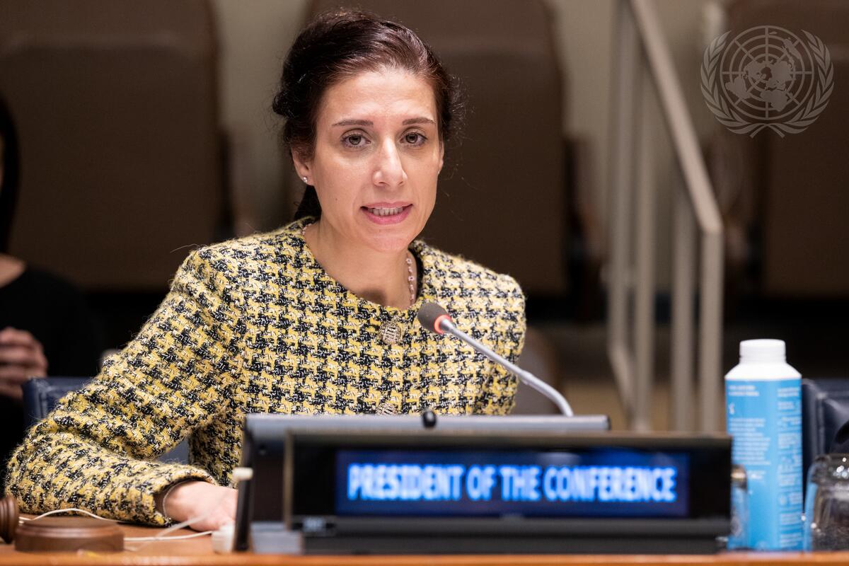 Jeanne Mrad, Charge d'Affaires, a.i. and Deputy Permanent Representative of Lebanon to the United Nations and President of the Conference on Establishment of a Middle East Zone Free of Nuclear Weapons and Other Weapons of Mass Destruction chairs the 3rd session of the Conference (November 14-18, 2022).