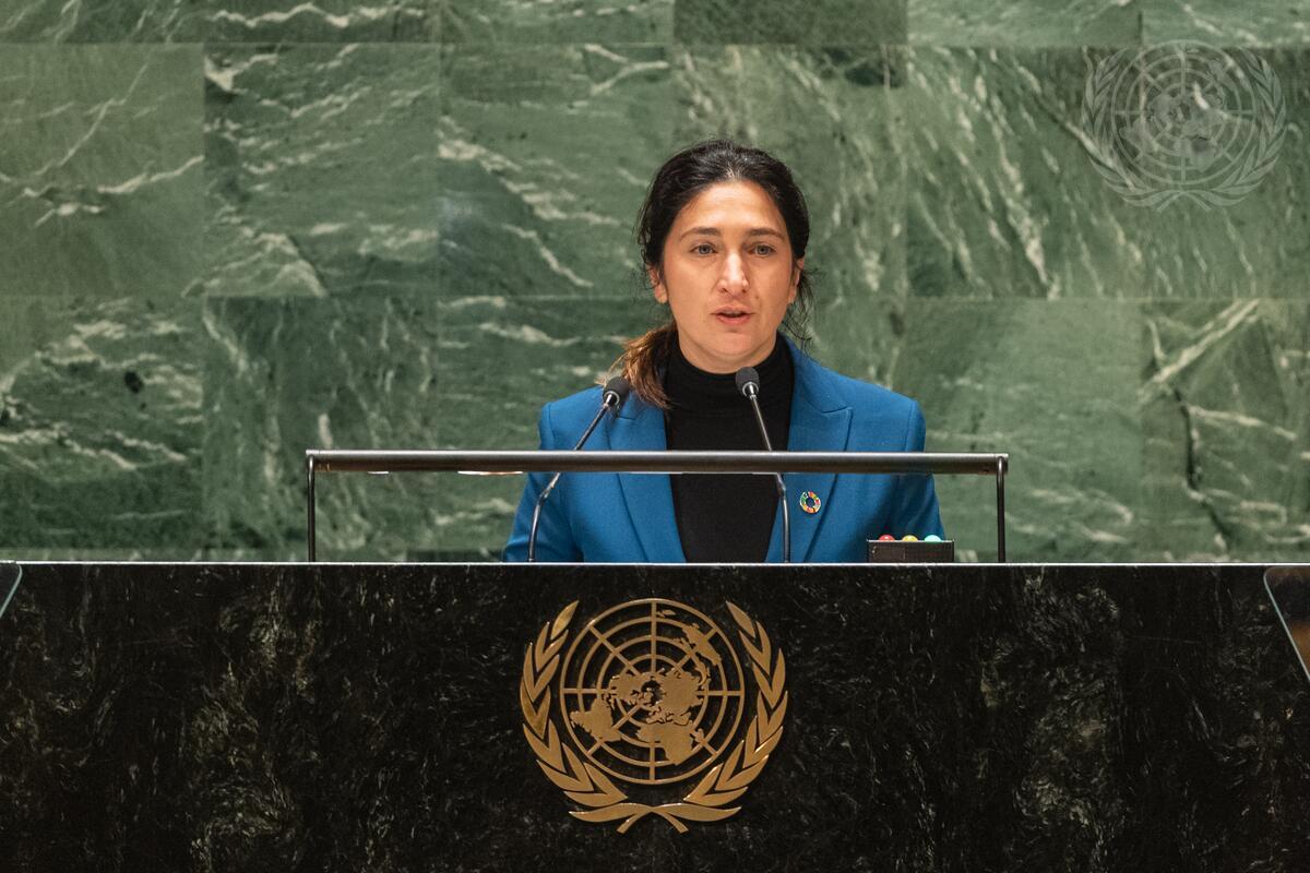 Zuhal Demir, Minister of Justice and Law Enforcement, Environment, Energy and Tourism of Belgium, addresses the United Nations Conference on the Midterm Comprehensive Review of the Implementation of the Objectives of the International Decade for Action “Water for Sustainable Development”, 2018–2028.