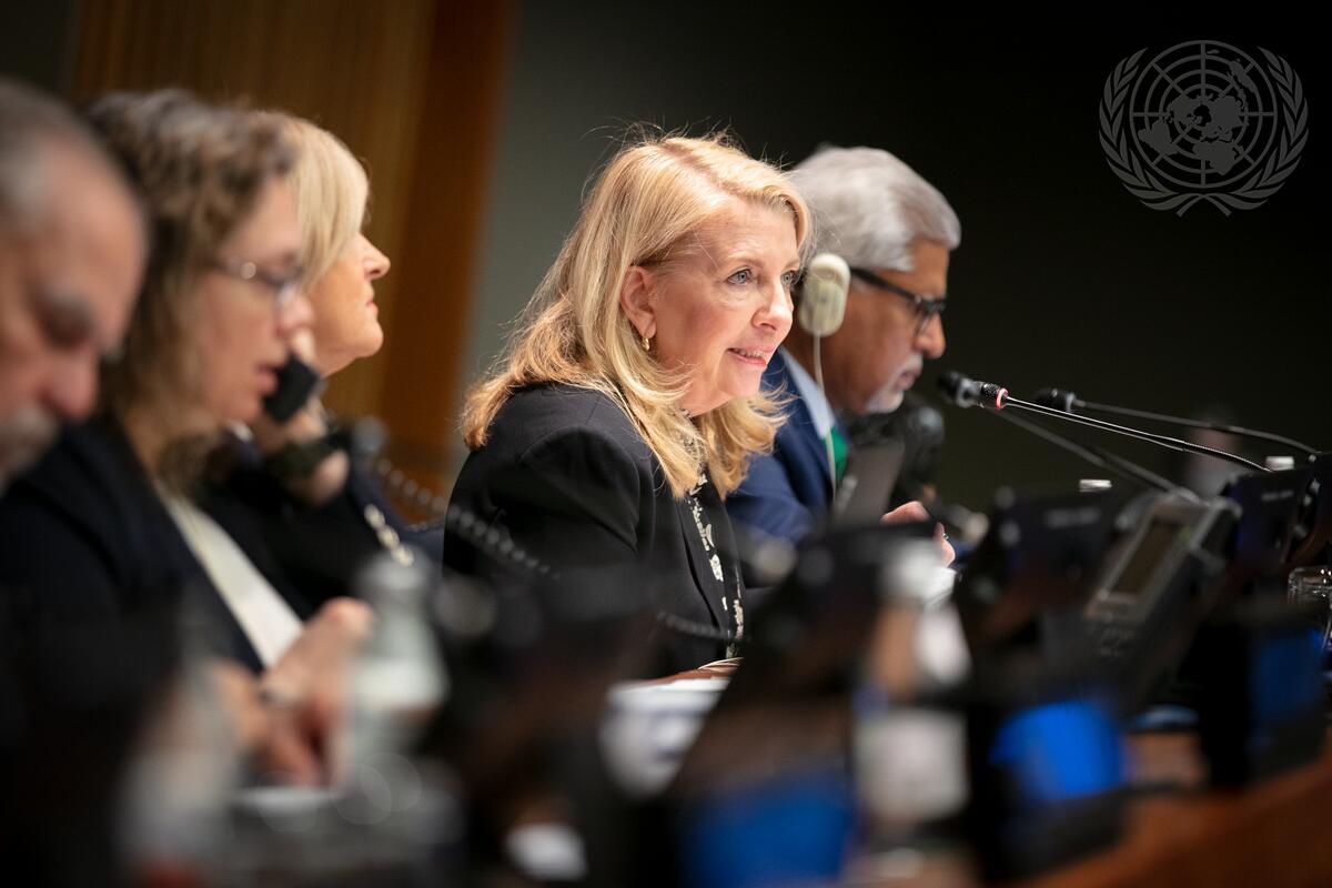 Catherine M. Russell (second from right), Executive Director of the United Nations Fund for Children (UNICEF), speaks during the Interactive Dialogue on “Water for Health: Access to WASH (water, sanitation and hygiene), including the Human Rights to Safe Drinking Water and Sanitation”.