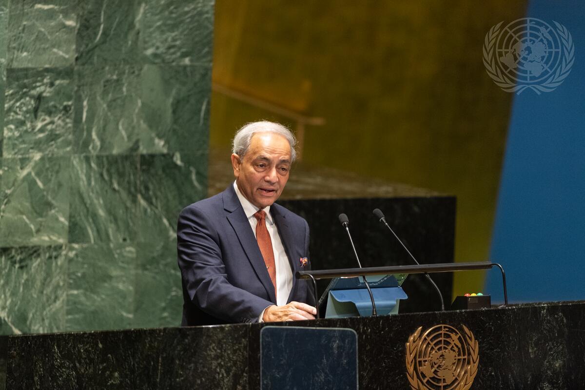 Peter Mohan Maithri Pieris, Permanent Representative of the Democratic Socialist Republic of Sri Lanka to the United Nations. addresses the commemorative General Assembly meeting to mark the International Day for the Elimination of Racial Discrimination on the theme: “The urgency of combating racism and racial discrimination 75 years after the adoption of the Universal Declaration of Human Rights”.