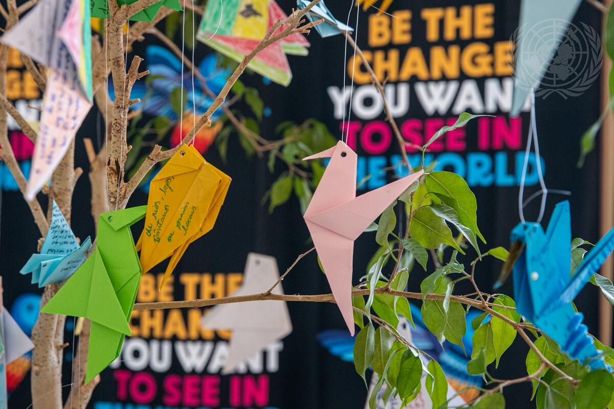 Decorative origami at SDG Media Zone during the UN 2023 Water Conference.