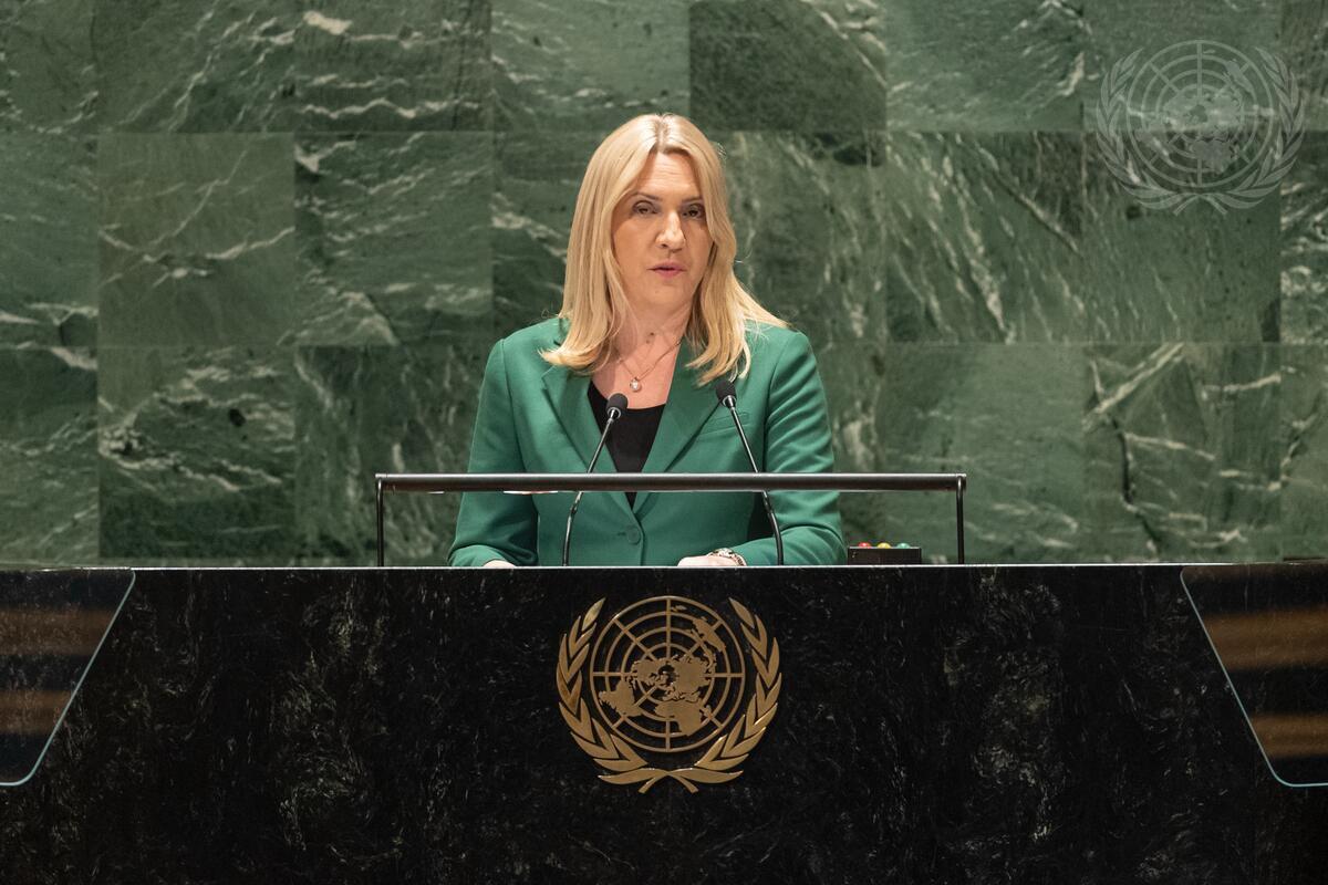 Željka Cvijanović, Chair of the Presidency of Bosnia and Herzegovina, addresses the opening of the United Nations Conference on the Midterm Comprehensive Review of the Implementation of the Objectives of the International Decade for Action “Water for Sustainable Development”, 2018–2028.