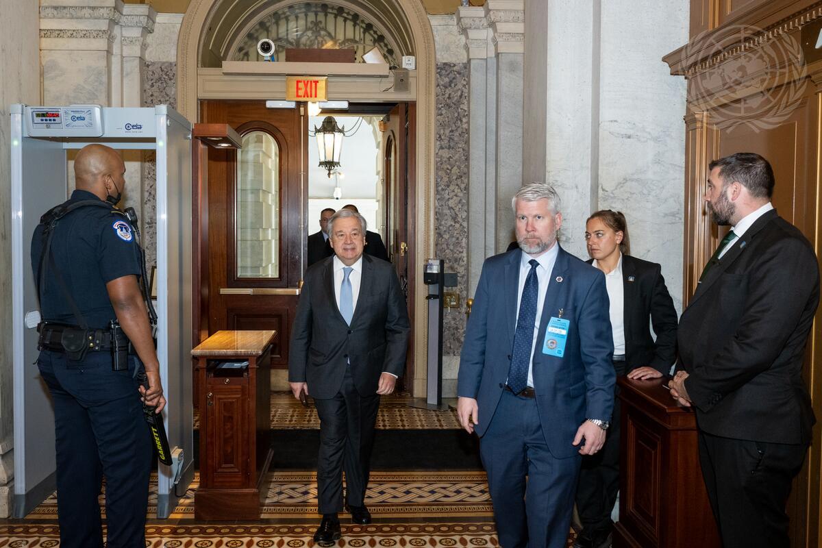Secretary-General António Guterres (second from left) arrives at United States Capitol in Washington, D.C.. The Secretary-General is in Washington to meet with Antony Blinken, Secretary of State of the United States of America, various Members of the US Congress, the leadership of the House and Senate Appropriations Committees and of the House Foreign Affairs Committee.