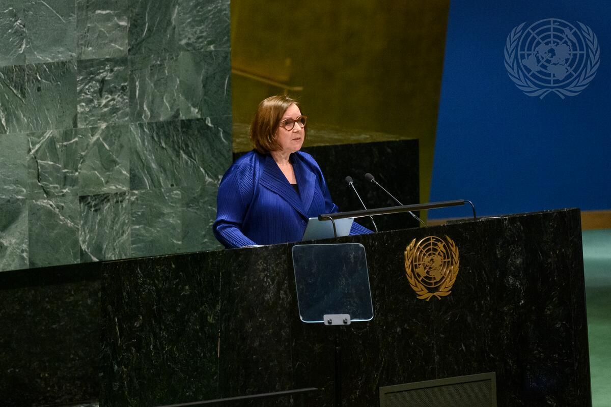 Catherine Marchi-Uhel, Head of the International, Impartial and Independent Mechanism to assist in the investigation and prosecution of persons responsible for the most serious crimes under International Law committed in the Syrian Arab Republic since March 2011 (IIIM), addresses the 67th plenary meeting of the General Assembly on the prevention of armed conflict.