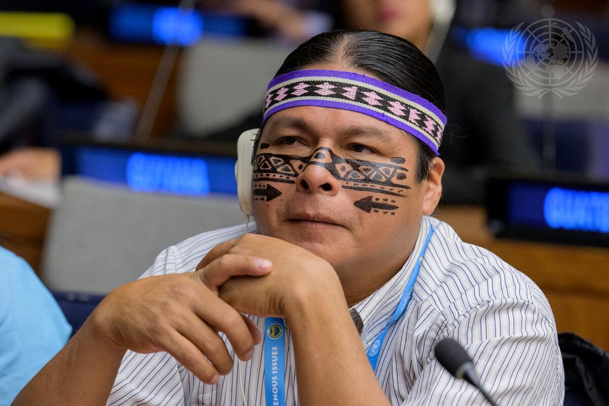 A view of a participant during the Human rights dialogue with the Special Rapporteur on the rights of Indigenous Peoples and the Expert Mechanism on the Rights of Indigenous Peoples during the 22nd session of the Permanent Forum on Indigenous Issues (UNPFII).