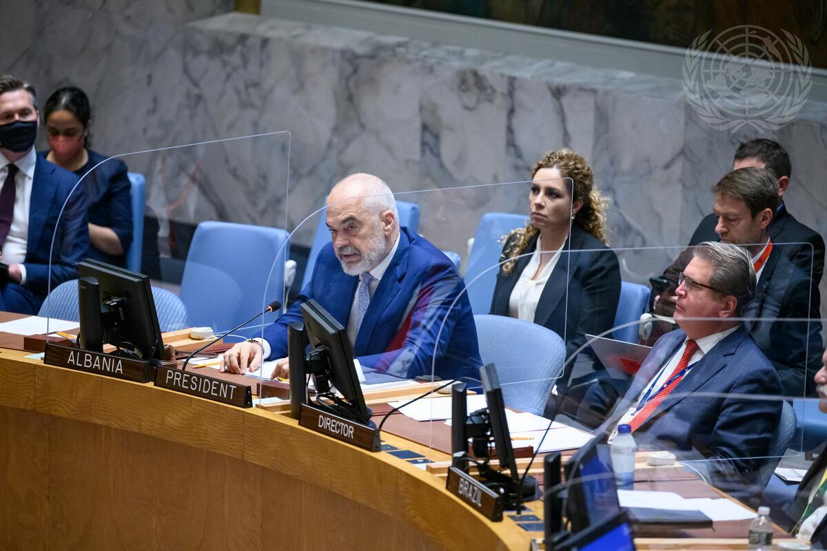 Edi Rama (centre), Prime Minister of the Republic of Albania and President of the Security Council for the month of June, chairs the Security Council meeting on strengthening accountability and justice for serious violations of international law, under maintenance of international peace and security.