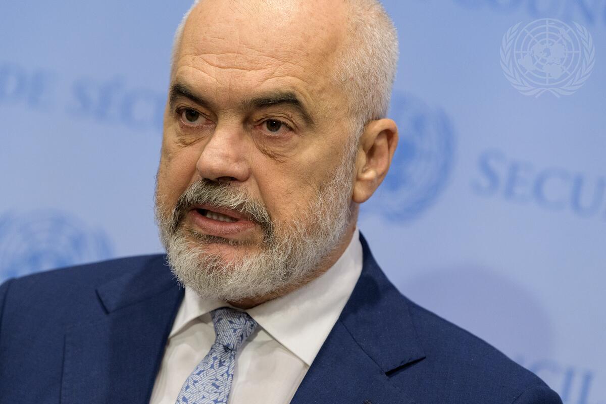 Edi Rama, Prime Minister of the Republic of Albania and President of the Security Council for the month of June, briefs reporters ahead of the Security Council meeting on strengthening accountability and justice for serious violations of international law.