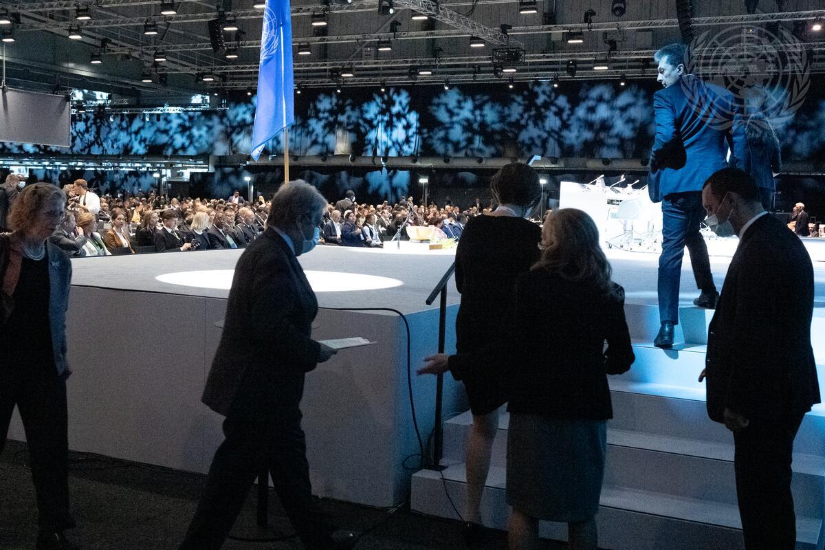 Secretary-General António Guterres (second from left) arrives to address the opening of the Stockholm+50 Conference.