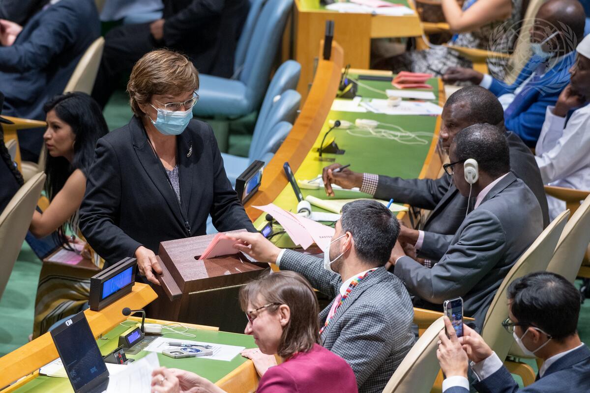 A view of the election of members of the Economic and Social Council during the 81st plenary meeting of the 76th session of the General Assembly.