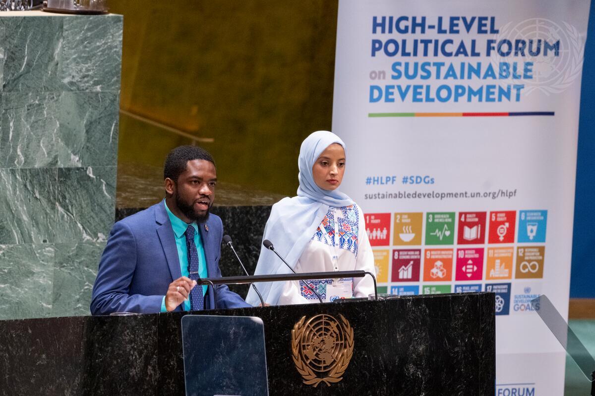 Jevanic Henry, member of the UN Secretary-General Youth Advisory Group on Climate Change, speaks during the ministerial opening of the "High-level Political Forum on Sustainable Development" convened under the auspices of the Economic and Social Council.