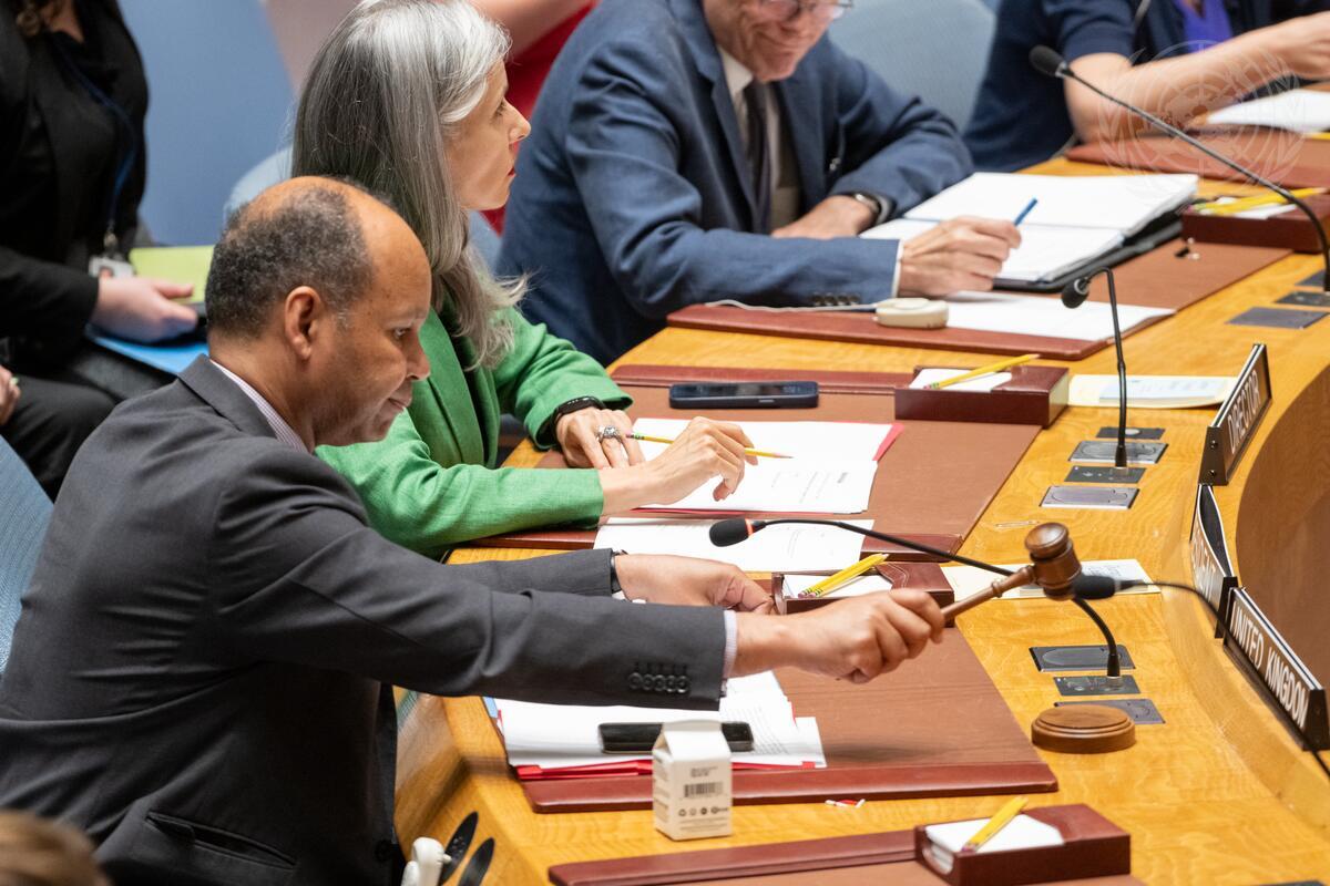 James Kariuki, Deputy Permanent Representative of the United Kingdom to the United Nations and President of the Security Council for the month of July, chairs the Security Council meeting on non-proliferation and the Democratic People's Republic of Korea.