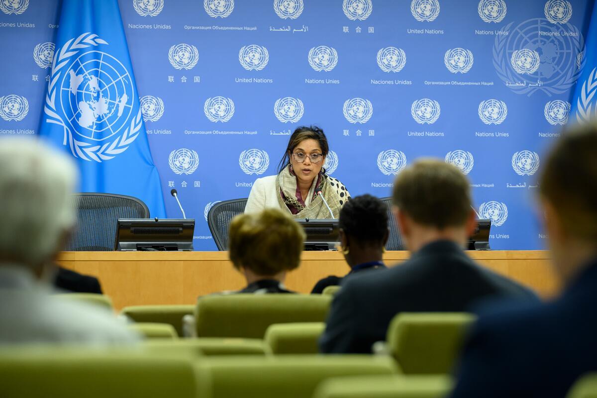 Angeli Achrekar, Assistant Secretary General and Deputy Executive Director of the Joint United Nations Programme on HIV/AIDS (UNAIDS), briefs reporters on the 2023 Global AIDS Update report.