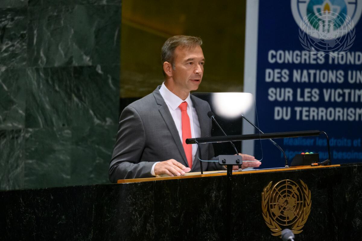Pascal Kober, Federal Government Commissioner for Persons Affected by Terrorist and Extremist Attacks Committed on National Territory of Germany, addresses the United Nations Global Congress of Victims of Terrorism 2022.
