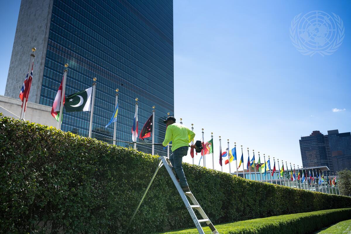 Landscape gardeners are getting the UN Headquarters ready for the seventy-seventh session of the United Nations General Assembly.
