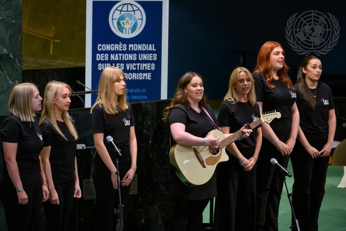 Musical interlude held by Manchester Survivors Choir, “Bee the Difference Project,” from the United Kingdom during the United Nations Global Congress of Victims of Terrorism 2022.