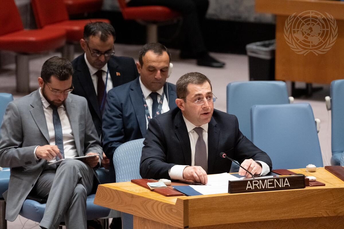 Mher Margaryan, Permanent Representative of the Republic of Armenia to the United Nations, addresses the Security Council meeting on threats to international peace and security.