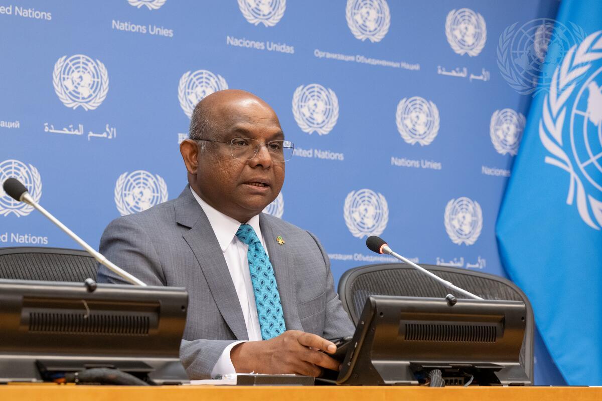 Abdulla Shahid, President of the seventy-sixth session of the United Nations General Assembly, briefs reporters on the conclusion of the seventy-sixth session of the United Nations General Assembly.