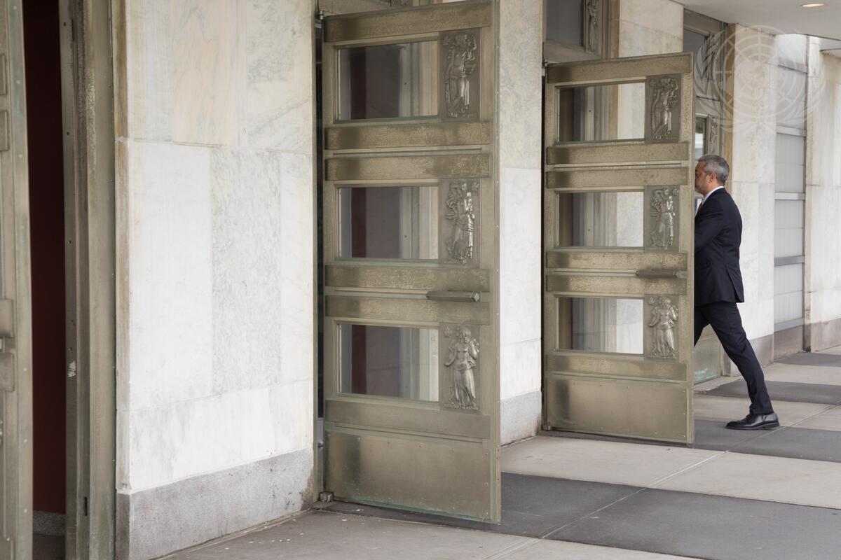 A view of UN Headquarters and staff preparing for the high-level week of the seventy-seventh session of the General Assembly.