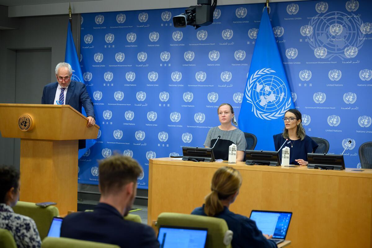 Standing at the podium is Stéphane Dujarric, Spokesperson for the Secretary-General.