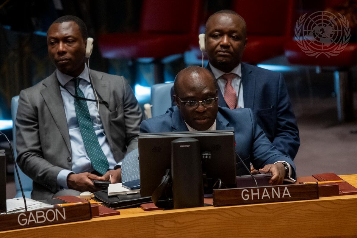Harold Adlai Agyeman, Permanent Representative of Ghana to the United Nations, addresses the Security Council meeting on the Sudan and South Sudan.