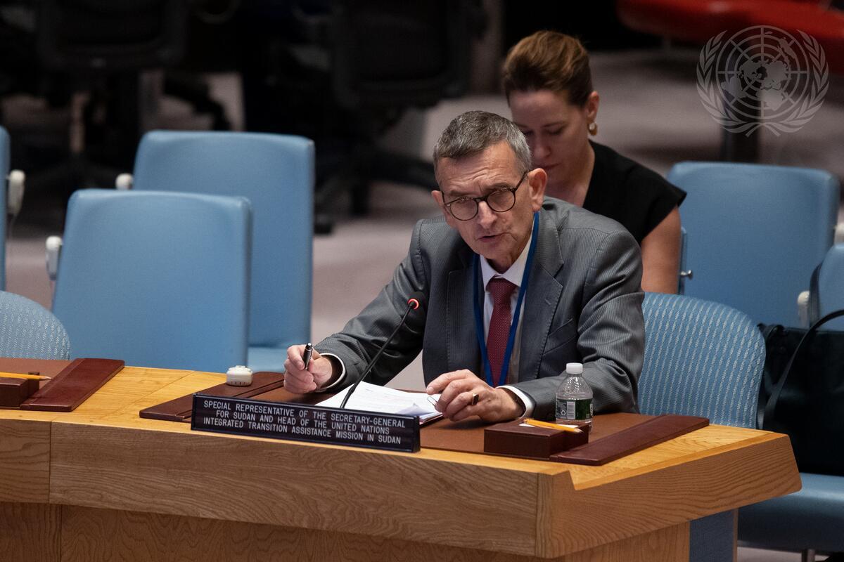 Volker Perthes, Special Representative of the Secretary-General for Sudan and Head of the United Nations Integrated Transition Assistance Mission in Sudan, briefs the Security Council meeting on the Sudan and South Sudan.