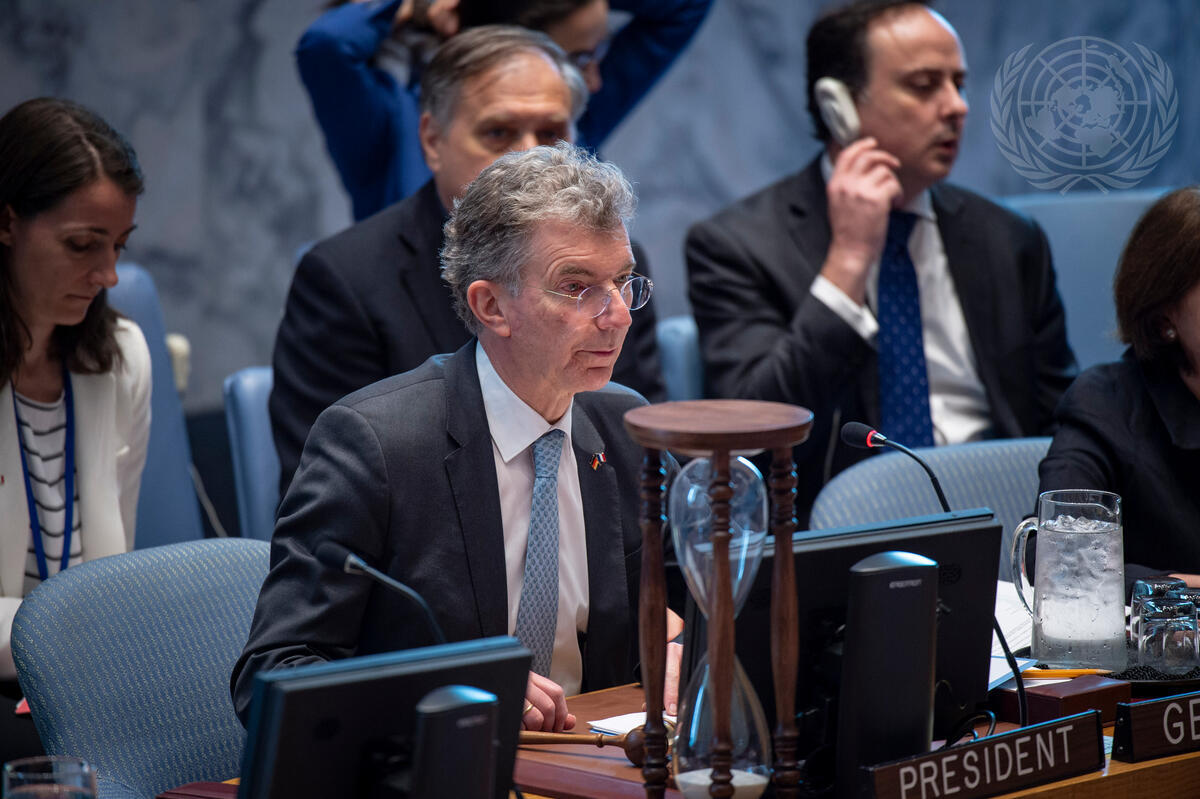 Christoph Heusgen, Permanent Representative of Germany to the United Nations and President of the Security Council for the month of April, chairs the Security Council on the situation in Ukraine.