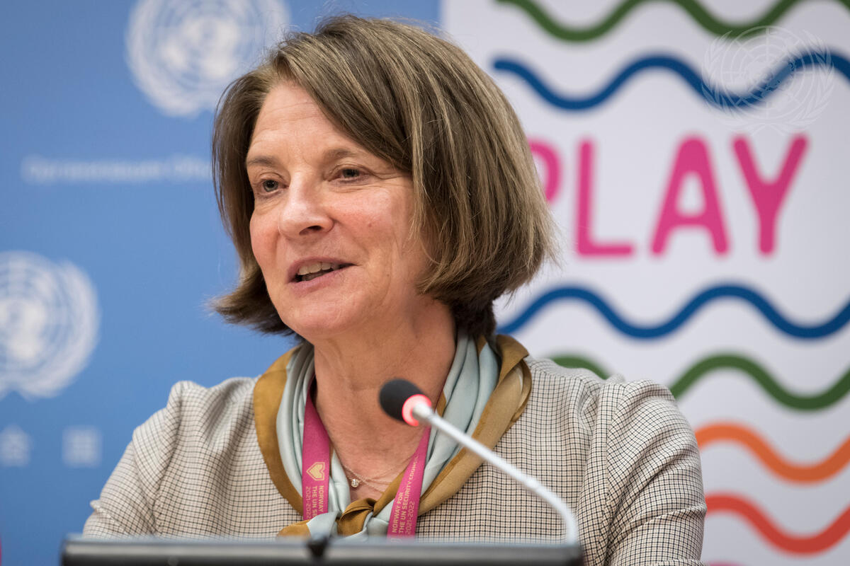 Mona Juul, Permanent Representative of Norway to the United Nations, speaks at the press briefing on the upcoming ‘Play it Out’ concert to beat plastic pollution.