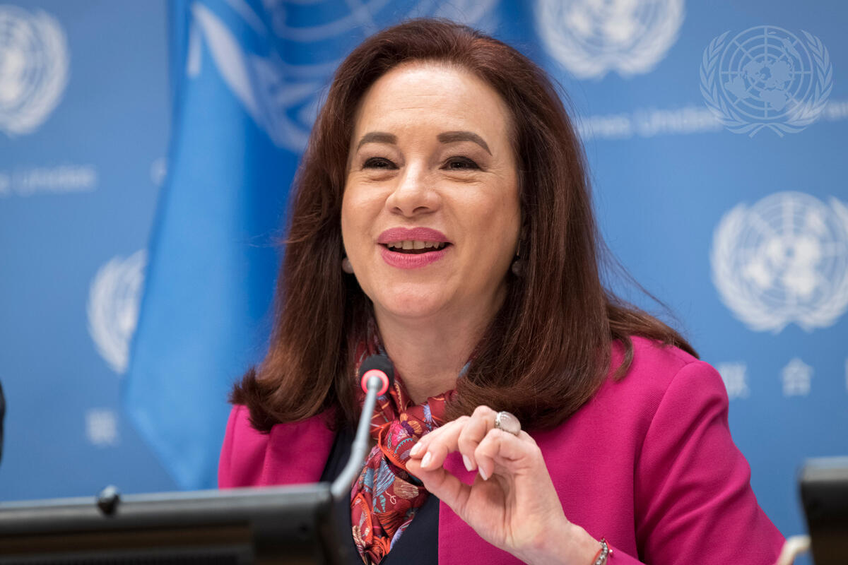 María Fernanda Espinosa Garcés, President of the General Assembly, speaks at the press briefing on the upcoming ‘Play it Out’ concert to beat plastic pollution.