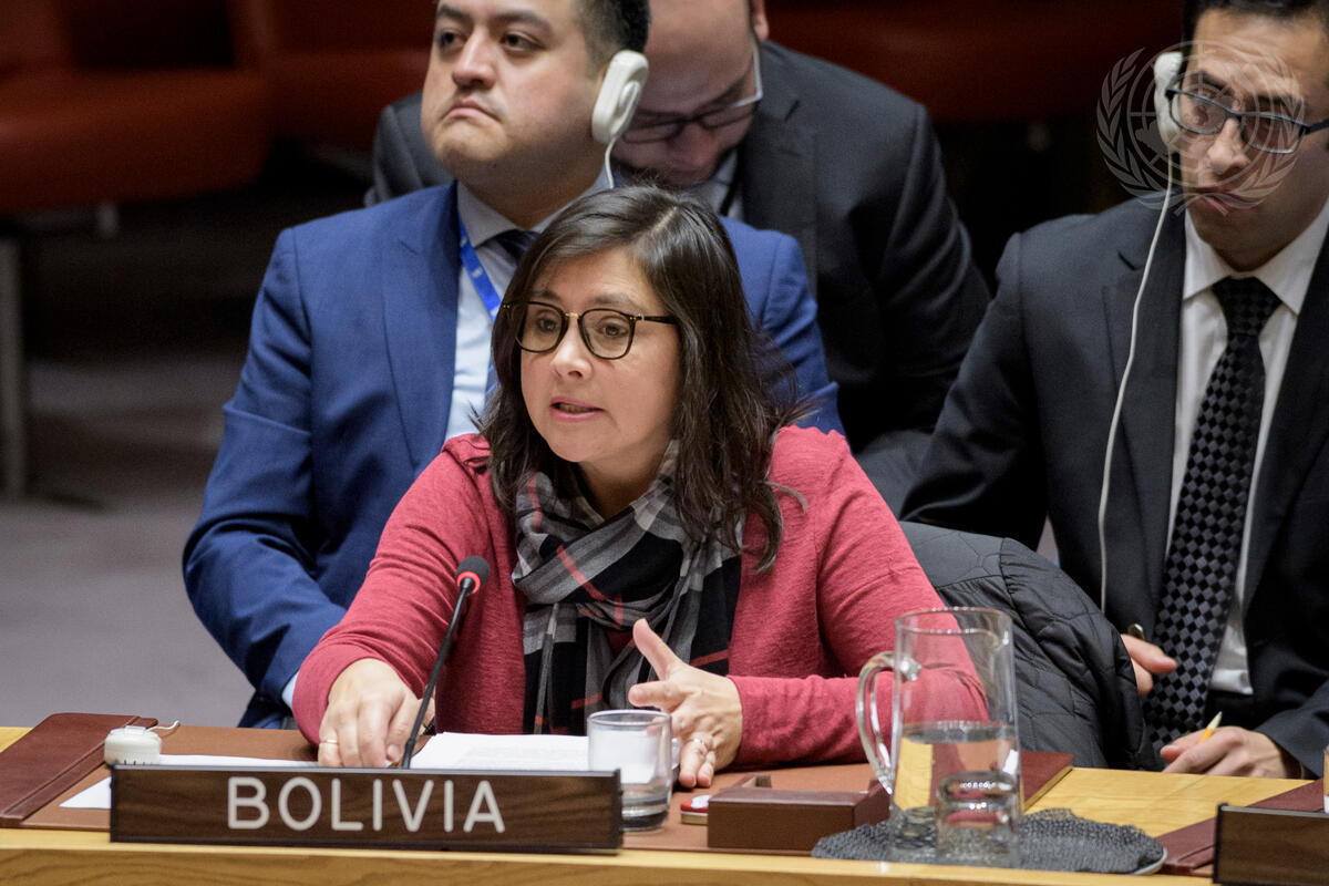 Veronica Cordova Soria, Deputy Permanent Representative of the Plurinational State of Bolivia, briefs the Security Council on behalf of the Chair of the 1540 Committee.
