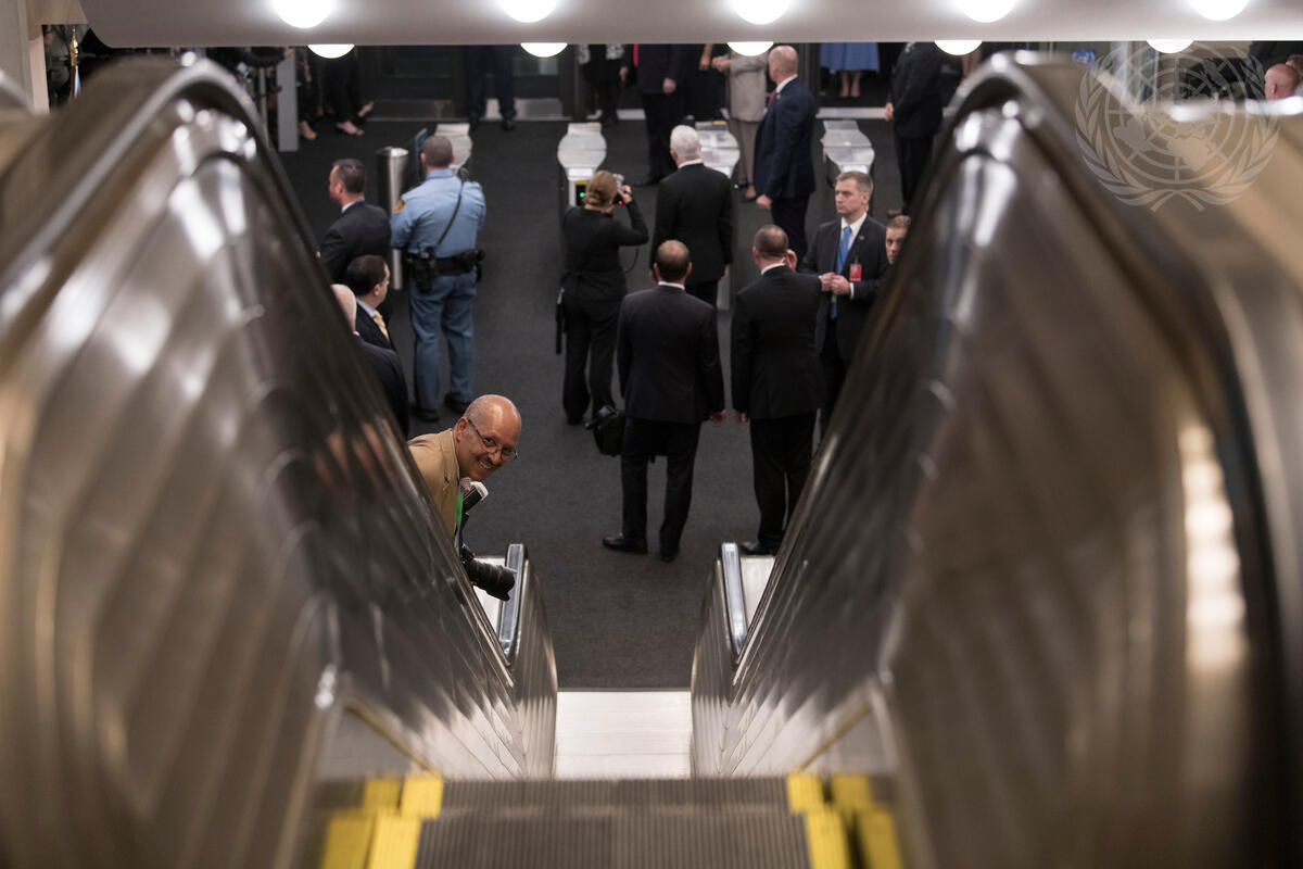 UN Photographer Eskinder Debebe and UN Security Officers at work during the first day of the General Assembly's seventy-third general debate.