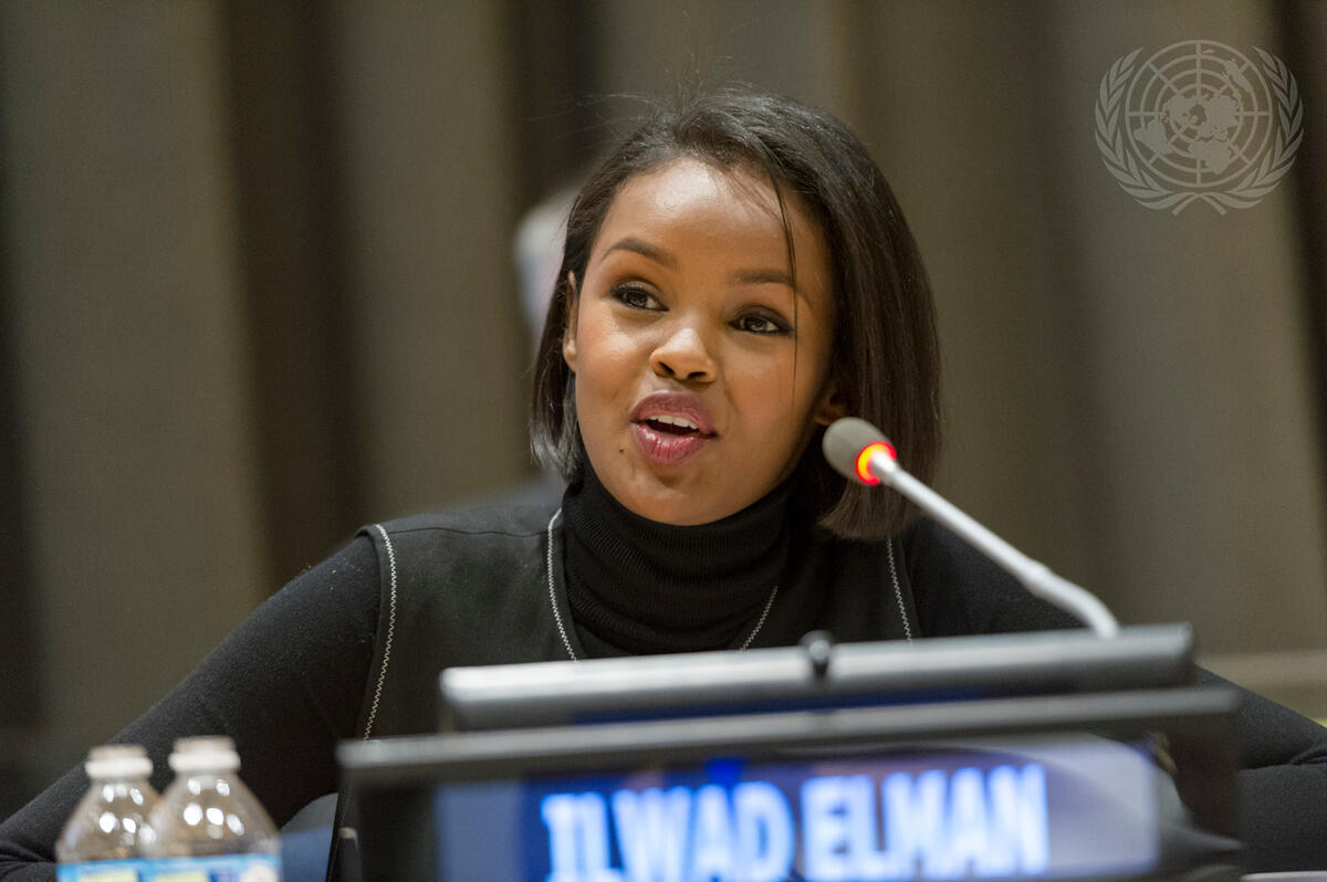Ilwad Elman, Director of Programs and Development at Elman Peace and Human Rights Centre, Somalia, addresses the General Assembly informal meeting to commemorate the 20th anniversary of the mandate of the Special Representative of the Secretary-General for Children and Armed Conflict.