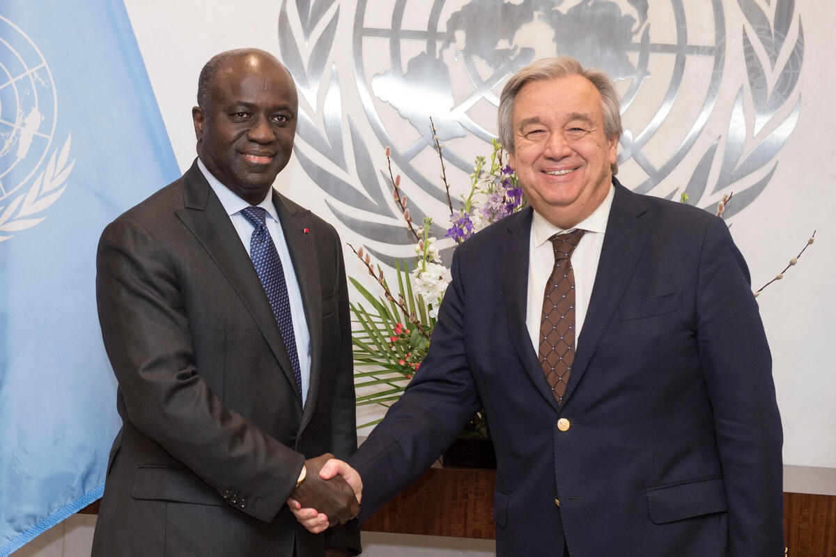 Secretary-General António Guterres (right) meets with Marcel Amon-Tanoh, Minister for Foreign Affairs of Côte d’Ivoire.