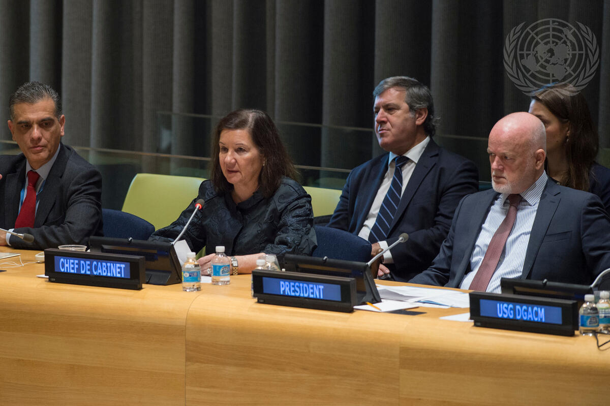 Maria Luiza Ribeiro Viotti (centre left), Chef de Cabinet to the Secretary-General, addresses the General Assembly high-level meeting to commemorate the tenth anniversary of the adoption of the International Convention for the Protection of All Persons from Enforced Disappearance. Also pictured: Santiago Corcuera Cabezut (left), Chairperson of the UN Committee on Enforced Disappearances; Peter Thomson (right), President of the seventy-first session of the General Assembly.