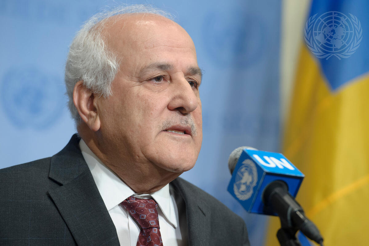 Riyad H. Mansour, Permanent Observer of the State of Palestine to the UN, speaks to journalists, following a Security Council meeting on the Middle East situation, including the Palestinian question.