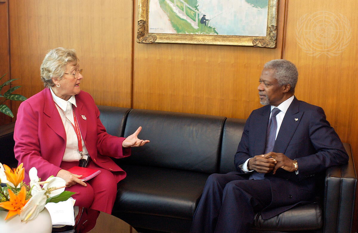 Secretary-General Kofi Annan (right) meets with Baroness Lynda Chalker, Chairperson, African Matters Ltd., United Kingdom